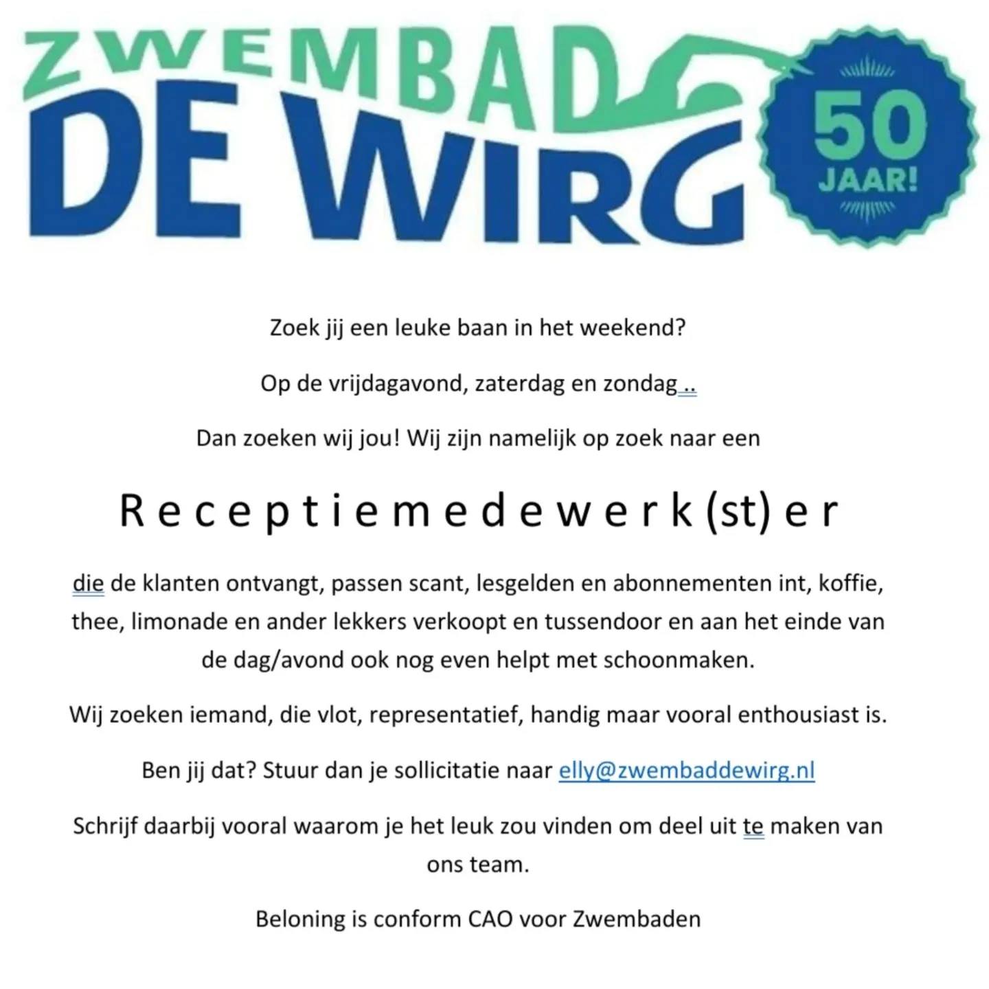 Wil je meer informatie of solliciteren, graag een e-mail sturen naar info@zwembaddewirg.nl